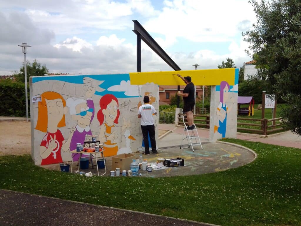 Los ilustradores Vallisoletanos Jorge Consuegra y Alberto Sobrino han pintado un mural en la localidad de Cigales a través de una subvención del pacto de estado contra la violencia de género bajo el lema "Yo decido, Yo respeto"