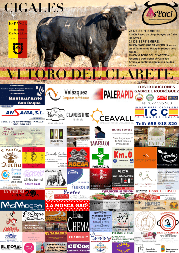 El Ayuntamiento de CIgales en colaboración con la Asociación Taurina de CIgales ASTACI organizan varios eventos taurinos durante la XLIII Fiesta de la Vendimia de Cigales.