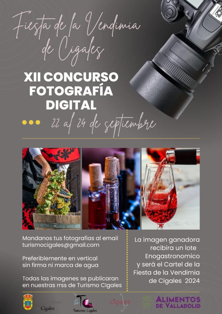 El Ayuntamiento de Cigales y la Oficina Municipal de Turismo convocan el XII Concurso de Fotografía Digital de la Fiesta de la Vendimia, declarada de Interés Turístico Regional, de acuerdo con las siguientes bases: